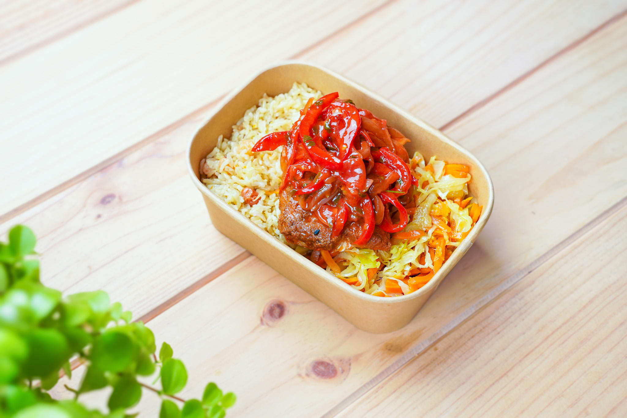 medalhões de pescada, cebolada de tomate (tomate cacho, cebola branca, pimento vermelho, polpa de tomate, azeite virgem extra, vinho branco, alho, coentros frescos, paprika fumada, coentros moídos, louro em pó, sal marinho, pimenta caiena