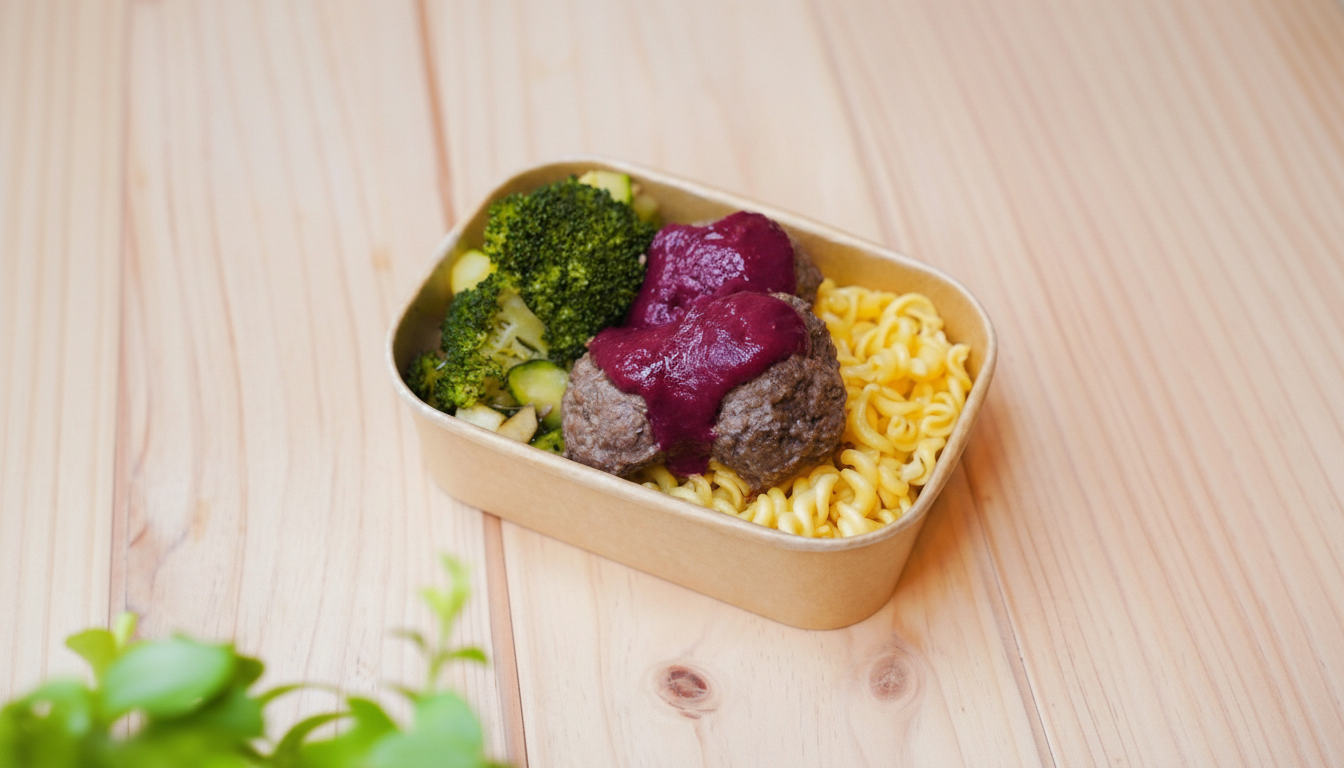alcatra, ovos biológicos (OVO), alho francês, farinha de amêndoa (FRUTOS DE CASCA RIJA), alho em pasta, azeite virgem, sal marinho, pimenta preta, alecrim; ketchup de Beterraba Paleo (beterraba cozida, polpa de tomate, azeite virgem extra, vinagre de vinho tinto, açúcar de coco, molho inglês, sal fino, alho granulado, cebola em pó e pimenta preta moída)