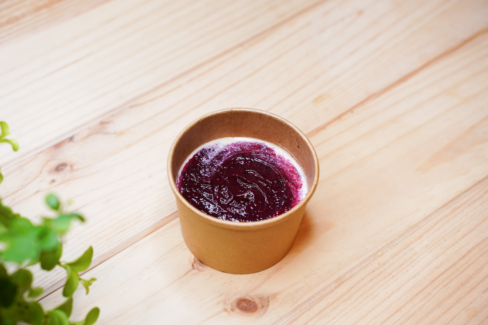 coulis de morango (morangos ultracongelados, agave biológico, água, vinagre balsâmico, ágar-ágar, aroma de baunilha).
